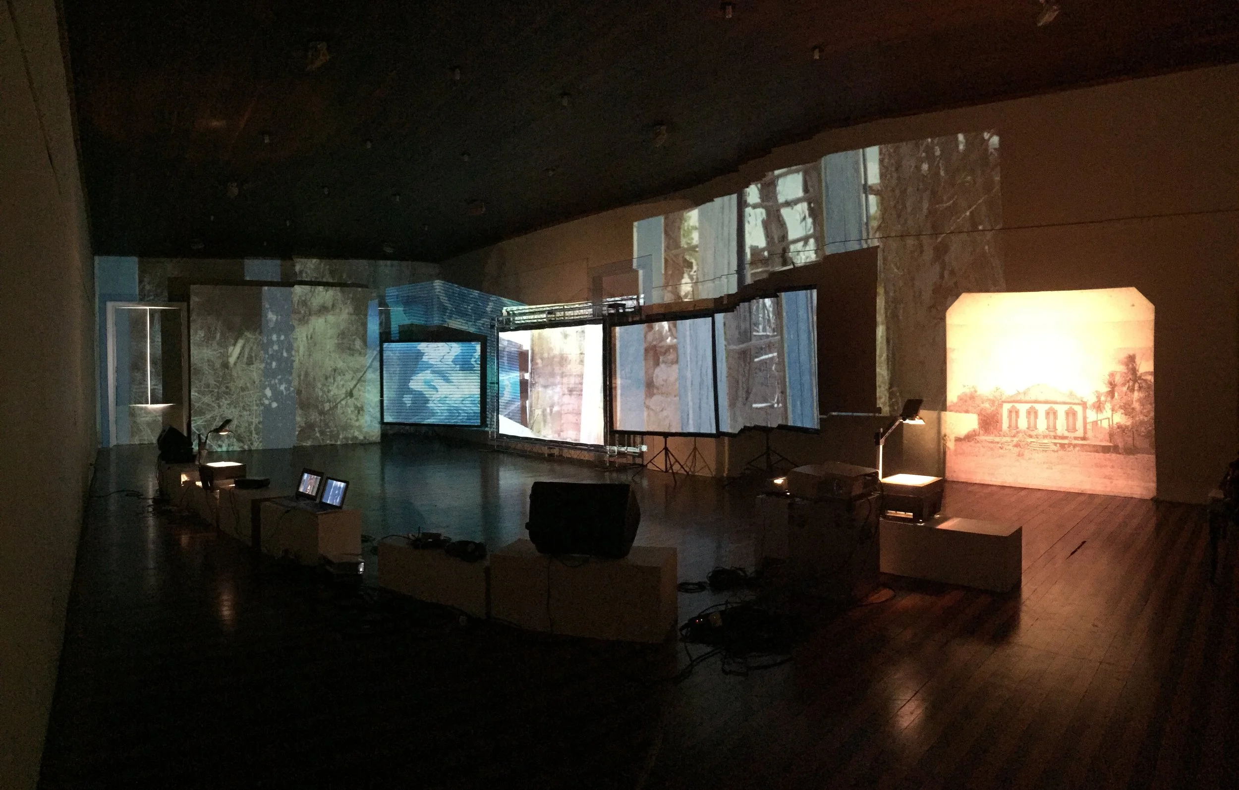 video installation – 5 projectors, 1 overhead projector, 1 slide projector and sound diffusion. Variable dimensions.Pinacoteca do Estado. Curated by Daniela Bousso. Natal, RN, Brazil. Solo show.